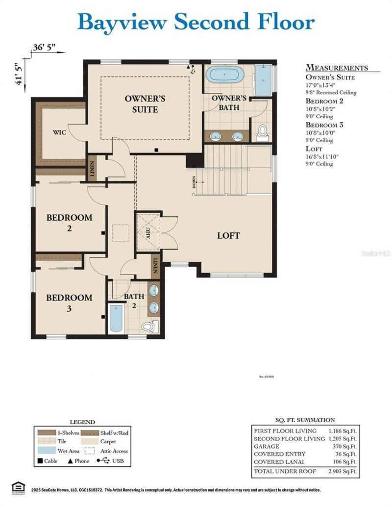 The Bayview is a stylish two-story home that perfectly combines modern design with the ease of coastal living. The first floor features an open layout ideal for today's lifestyles, with a spacious kitchen complete with a large pantry for extra storage, a versatile den, and an expanded front entry (available on B and C elevations). Upstairs, all bedrooms are thoughtfully arranged for privacy and comfort, including a luxurious owner's suite with a soaking tub, walk-in shower, and ample walk-in closet. The second floor also includes a generous loft area, ideal for additional living space, and a charming balcony (available on C elevation), perfect for enjoying the outdoors. Bring Offers!