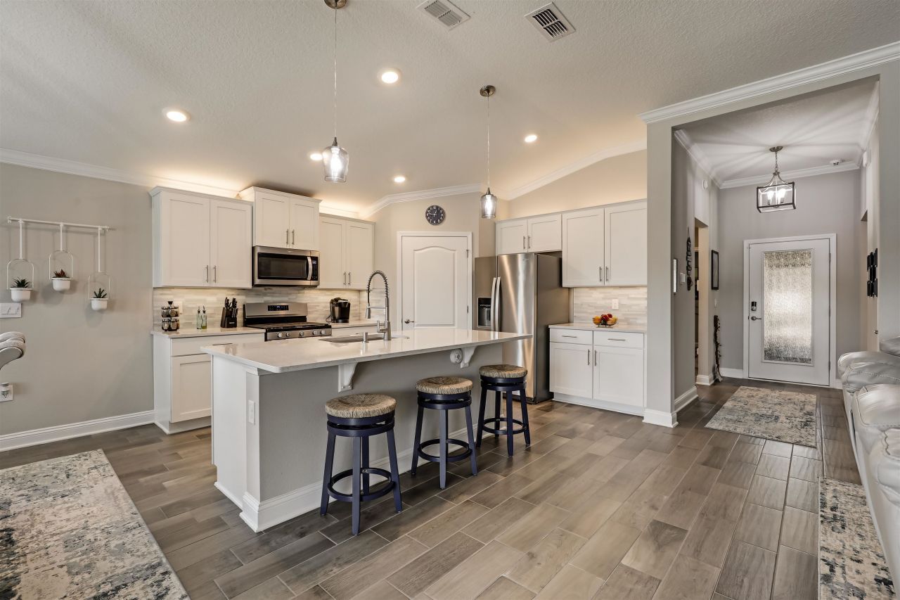 **POOL HOME**WATERFRONT**GATED COMMUNITY** Welcome to this modern and luxurious POOL HOME that defines Florida outdoor living at its finest. This stunning 3 bed/2 bath home features an OPEN LAYOUT and a SPLIT BEDROOM FLOOR PLAN where each bedroom is set apart from one another ensuring privacy. The backyard is a true outdoor oasis boasting a gorgeous in-ground gunite heated saltwater pool with 3 water spouts and 4 jacuzzi jets which overlooks a peaceful lake. All enclosed with a large screened cage with high quality mesh to keep the bugs away. With 100K SPENT ON POOL ALONE, you can enjoy a serene evening with multi pool light settings in a variety of colors.The master suite includes a spacious walk-in closet, with another walk-in closet located in the front bedroom. Upgraded landscaping includes gorgeous lighting in plant beds, paver driveway, sidewalk leading from the driveway to the pool area and landscape bed walls. Parkland Preserve is an active 55+ gated community which includes numerous resort style amenities: community clubhouse, fitness center, library, pool with shaded pool side cabanas, pickleball courts, dog park and bocce ball courts. The community maintains a social calendar with multiple activities to maintain an active senior lifestyle. Located near World Golf Village with easy access to I-95 and US1, you are minutes from historic downtown Saint Augustine and Jacksonville, top rated health facilities which includes Mayo Clinic, shopping, dining, professional sporting events, concerts, theater, golf courses such as the TPC Sawgrass and lots of water activities in the Atlantic Ocean, Intracoastal Waterway and the St. Johns River! This gem is a dream come true!