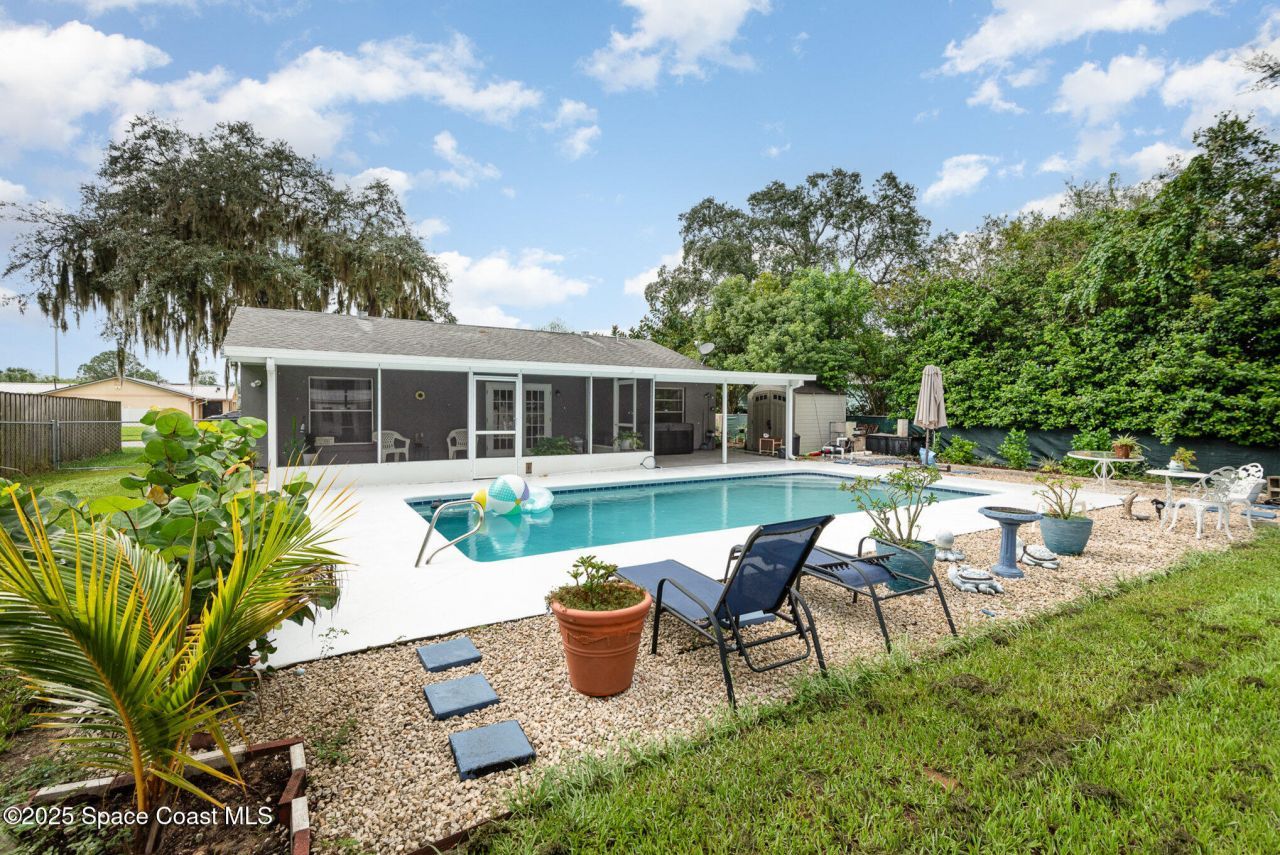 Fall in love with this cozy 2-bedroom, 2-bathroom home, filled with charm and character. Built in 1985 and offering 1,037 square feet of living space, this home features stainless steel appliances in the kitchen and a beautifully updated shower in the primary bathroom. Step outside to your own private resort-style retreat to a large screened back porch, perfect for entertaining friends and family. Cool off in the newer inviting saltwater pool or relax in the hot tub, or spend your weekends tinkering in the spacious workshop at the rear of the property. The home also includes hurricane shutters conveniently stored in the garage and home also features a brand new HVAC system.Whether youre planning ahead for your dream home or seeking a solid investment, this one checks all the boxes!