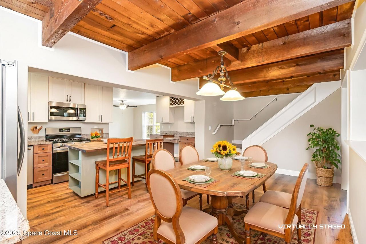 Your Coastal Escape: Modern Comforts + Endless Possibilities! Spacious and updated, this 2,092 sq. ft. home offers the perfect blend of charm and modern upgrades. Inside, youll love the warm exposed western cedar planks in the living room, a cozy wood-burning fireplace (chimney rebuilt 2019), and a beautifully remodeled kitchen with granite counters, gas stove, and coffee bar. Major improvements include: BRAND NEW A/C (2025), new septic system (2024), Generac generator (2023), mini-split A/C in the primary suite (2025), water heater (2019) and water treatment with PFAS removal, reverse osmosis, and softener. Outdoor living shines: new irrigation, well pump, lighting, & lush zoysia grass (2024). Property also features 2 driveways, 2-story workshop with covered carport-type work area ?perfect for projects or storage and room for your boat and cars. Enjoy peace of mind plus quick access to beaches, Kennedy Space Center, Orlando, maj& or highways. Some pictures virtually staged.