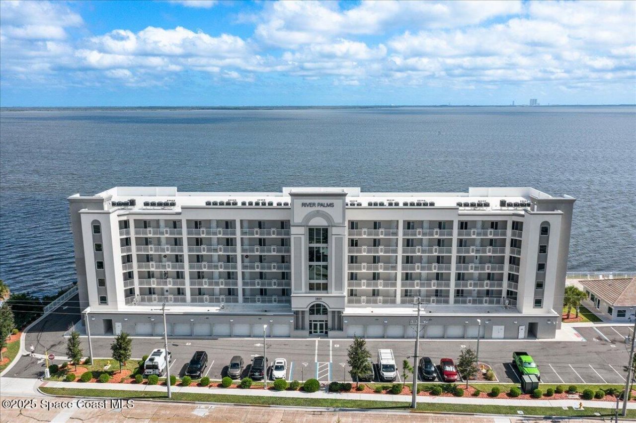 2 DEDICATED PARKING SPOTS Welcome to River Palms ? a newer riverfront 3-bedroom, 2-bath condo offering the perfect blend of luxury and coastal tranquility. This residence features an upgraded kitchen with solid surface counters, stainless steel appliances, and rich wood shaker cabinetry. Wood-like tile flows seamlessly throughout, complemented by impact windows for peace of mind and energy efficiency. Enjoy both a semi-private garage space and an additional assigned under-building parking spot. From your balcony, take in breathtaking river views, rocket launches, and daily sightings of dolphins and manatees right outside your door ? the ultimate Florida waterfront lifestyle. Furnishings are included, turn key unit. Complete with community salt water pool and clubhouse right on the river. Close to shopping, restaurants and major highways.