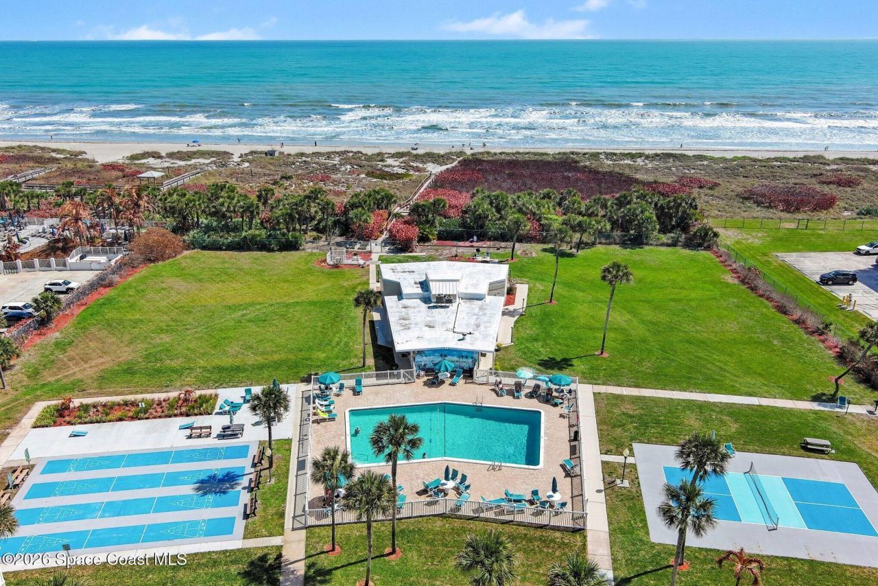 Enjoy breathtaking direct ocean views from this beautifully maintained 2BR/2BA condo in the Twin Towers community. The spacious kitchen features Corian countertops, a large pantry, and newer stainless steel appliances, including a Fisher & Paykel dishwasher drawer and an instant hot water dispenser. Beautiful laminate flooring throughout, and the primary suite offers a large walk-in closet. Both bathrooms have been tastefully remodeled. Additional updates include a new hot water heater, new electrical panel box, newly caulked impact windows, freshly painted baseboards, trim, and doors. Community amenities include a heated pool, clubhouse, shuffleboard, pickleball, and outdoor grilling areas. This unit comes fully furnished and offers panoramic views of the Atlantic, perfect for watching spectacular sunrises, rocket launches, air shows, and boat races right from your home in the heart of Cocoa Beach.