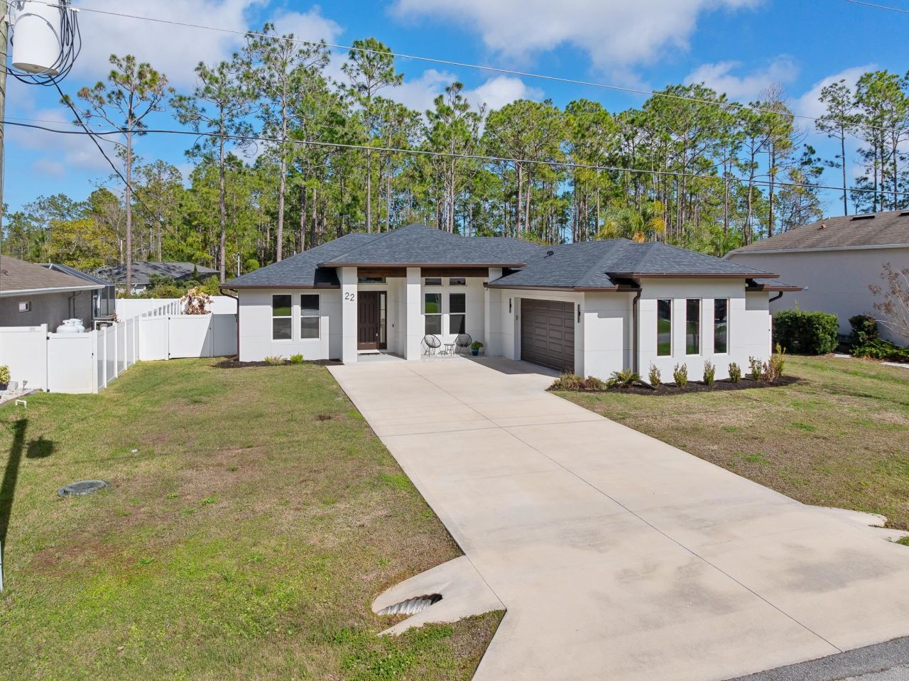 Welcome to this stunning, nearly new modern retreat that delivers the elevated Florida lifestyle youâ??ve been searching for. Built in 2021, this 3-bedroom, 2-bathroom concrete block home in Palm Coast combines sleek contemporary design with high-end finishes that feel truly custom. From the moment you step inside, soaring 12- and 11-foot ceilings, smooth walls, and 8-foot interior doors create an expansive, airy atmosphere anchored by luxury vinyl plank flooring throughout. The open-concept layout flows effortlessly from a dramatic electric fireplace focal wall to a chef-inspired kitchen featuring a center island, making it as perfect for high-end entertaining as it is for everyday relaxation. Step outside to your private oasis, where a sparkling pool and large screened lanai extend your living space year-round. Beyond the property line, you are perfectly positioned to enjoy the best of Palm Coast, including over 125 miles of nature trails, the Graham Swamp Conservation Area, and pristine Atlantic beaches just minutes away. With convenient access to Town Centerâ??s shopping and dining, top-rated Flagler County schools, and an easy commute via US-1 and I-95, this home is a premier investment in one of Floridaâ??s fastest-growing markets.