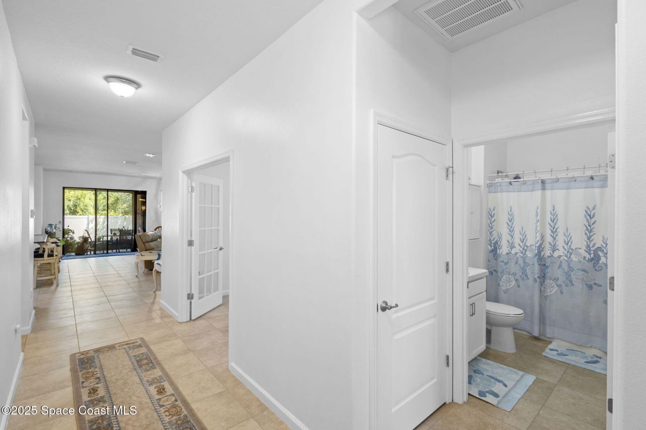 Welcome to this beautifully maintained home on a premium corner lot in a desirable 55+ community with manicured landscaping and great curb appeal. Freshly painted inside, this home features a spacious primary suite with two walk-in closets and a beautifully updated bathroom with a fog-resistant lighted mirror and new showerhead. The kitchen shines with a new 2025 stove with air fryer, 2025 microwave and dishwasher, a 2024 garbage disposal, and an oversized walk-in pantry for exceptional storage. Additional upgrades include added laundry cabinetry, privacy fence, video doorbell, and security system. The garage offers ceiling-mounted storage racks, motion-sensor carriage lights, and an epoxy-sealed floor, while the attic includes wood flooring for additional storage. Improvements also include cleaned ductwork, a mold-reducing UV light in the HVAC system, professionally cleaned and resealed pavers, accordion hurricane shutters, and double-pane windows. Enjoy a resort-style community pool with lawn care and sprinkler maintenance included. Conveniently located near the VA Clinic, shopping, dining, and just a short drive to the beaches.