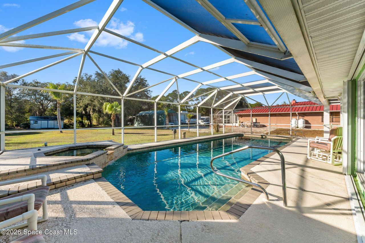 Set on a full acre with a sparkling pool, this updated home offers space, privacy, and the kind of flexibility thats hard to come by. Major improvements include a new screen enclosure, a metal roof (2020), accordion shutters (2019), HVAC (2019), and new windows (2021), plus a freshly painted exterior in 2025 for a polished first impression. The kitchen has been updated with granite surfaces and thoughtful pull-out storage, while wood-look tile flows through the main living areas, complemented by classic plantation shutters. High vaulted ceilings and skylights keep the interiors feeling open and sunlit, and the oversized under-air sunroom creates an airy bonus space that works as anything from a casual hangout to a bright home studio. Best of all, theres no HOA?just room to live, relax, and enjoy the property.