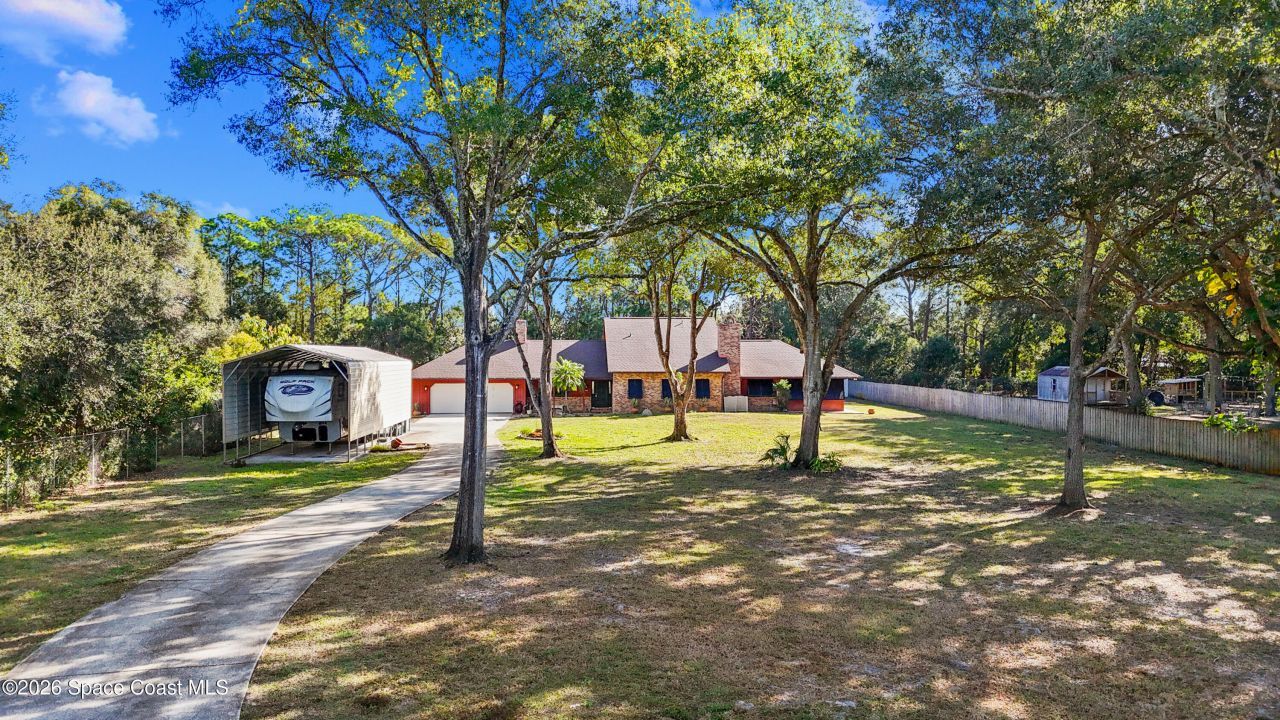 This distinctive Cocoa property offers space, character, and craftsmanship, set on over an acre of land. This cedar and brick home offers a warm, rustic-meets-classic feel that immediately stands apart. Inside, a is a unique space offering a versatile loft ideal for a home office, or additional living space. Thoughtful storage is found throughout the home, making it both functional and flexible for a variety of lifestyles.Step outside to an expanded screened deck featuring a sparkling pool, perfect for year-round entertaining, relaxing, or hosting gatherings. A detached shed adds additional storage or workspace, as well as a large, covered RV and boat parking.Offering privacy, space, and architectural character, this property is conveniently located near KSC and commuter routes while still feeling like a peaceful escape. A home designed for those who want something beyond the ordinary, with room to live, work, and play.