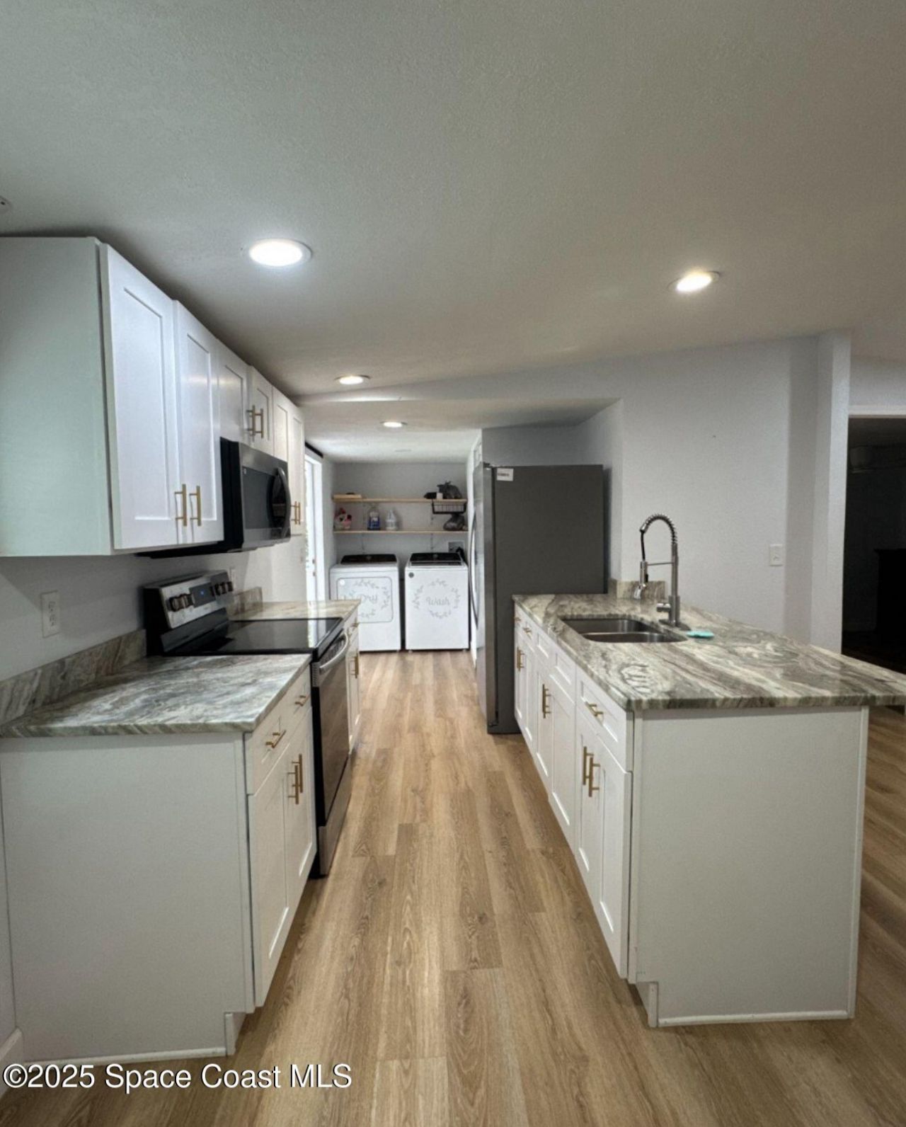 Beautiful mobile home with its own lot and no HOA in Cocoa.It features 3 bedrooms, 2 bathrooms, a fully equipped modern kitchen, a washer and dryer included, and an external storage area for extra storage. The spacious lot offers ideal space for gatherings, barbecues, and outdoor activities. An excellent option for those seeking comfort, privacy, and a home ready to enjoy. Just minutes from the beaches of Cocoa and Cape Canaveral, in a quiet area, surrounded by nature. Dont miss this opportunity to make it yours, enjoying a spacious lot and the comfort of your own home! Ready to move in!