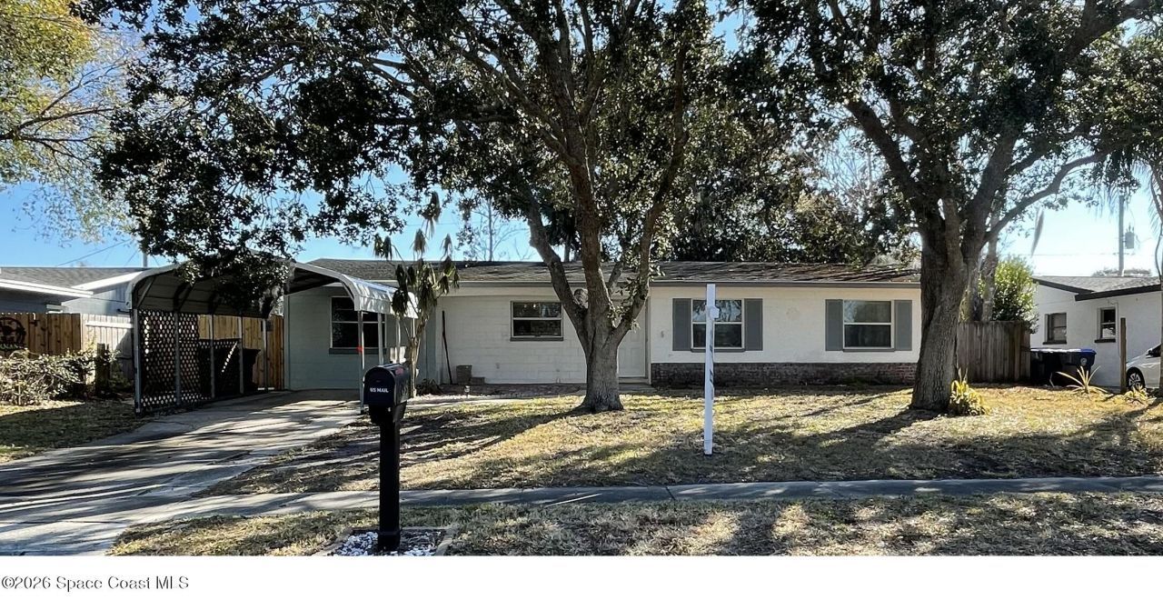 Concrete block ranch home featuring 3 bedrooms and 2 bathrooms, plus two spacious additional rooms under air--ideal for a home office, gym, or bonus living space. Approximately 1,696 sq ft under air (tax records inaccurate).This home offers natural gas appliances, a 1-car carport, and a fenced yard with an RV/boat pad and an 8x10 aluminum shed. Major updates include a roof (2018), A/C and water heater (2023), and newer refrigerator and dishwasher (2023).No HOA! Conveniently located near shopping, schools, I-95, US-1, and Kennedy Space Center, with easy access to Orlando--just 30 minutes away.