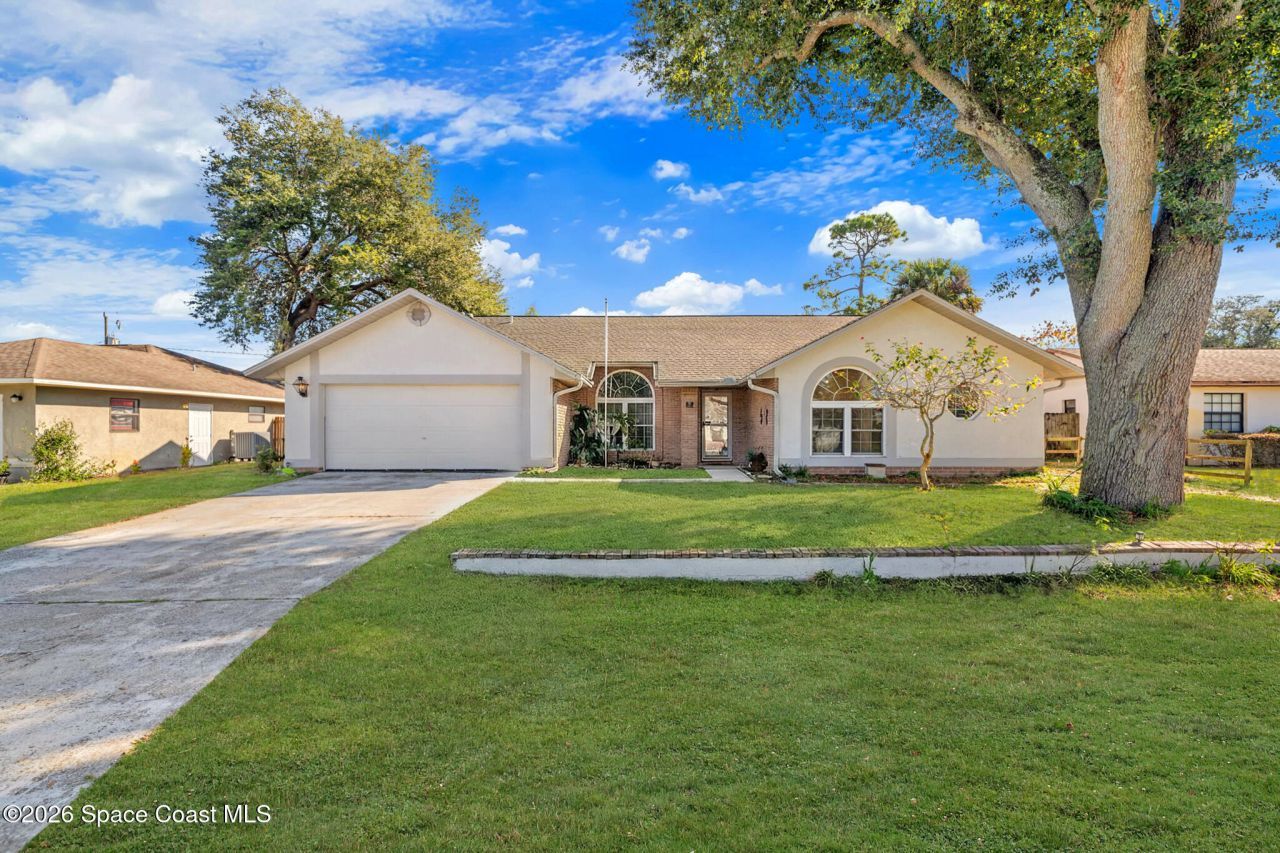 Beautiful 4-Bedroom, 2-Bath Pool Home in the Heart of Titusville!Welcome to this inviting and spacious home featuring an open floor plan, 2-car garage, and charming front walkway. Step inside to find formal living and dining areas that flow seamlessly into a large kitchen and comfortable family room?perfect for gatherings and everyday living.This home offers generously sized guest bedrooms, an indoor laundry room, and a versatile 4th bedroom that can double as an office or den. The main bedroom suite boasts vaulted ceilings, dual vanities, a relaxing garden tub, and a separate shower.Enjoy your fully fenced backyard oasis with lush landscaping and an L-shaped covered porch?ideal for unwinding or entertaining. The sparkling pool completes the outdoor retreat.Located close to shopping, dining, entertainment, beautiful local beaches, and exciting rocket launches, this home truly has it all. Dont miss your chance to make it yours!