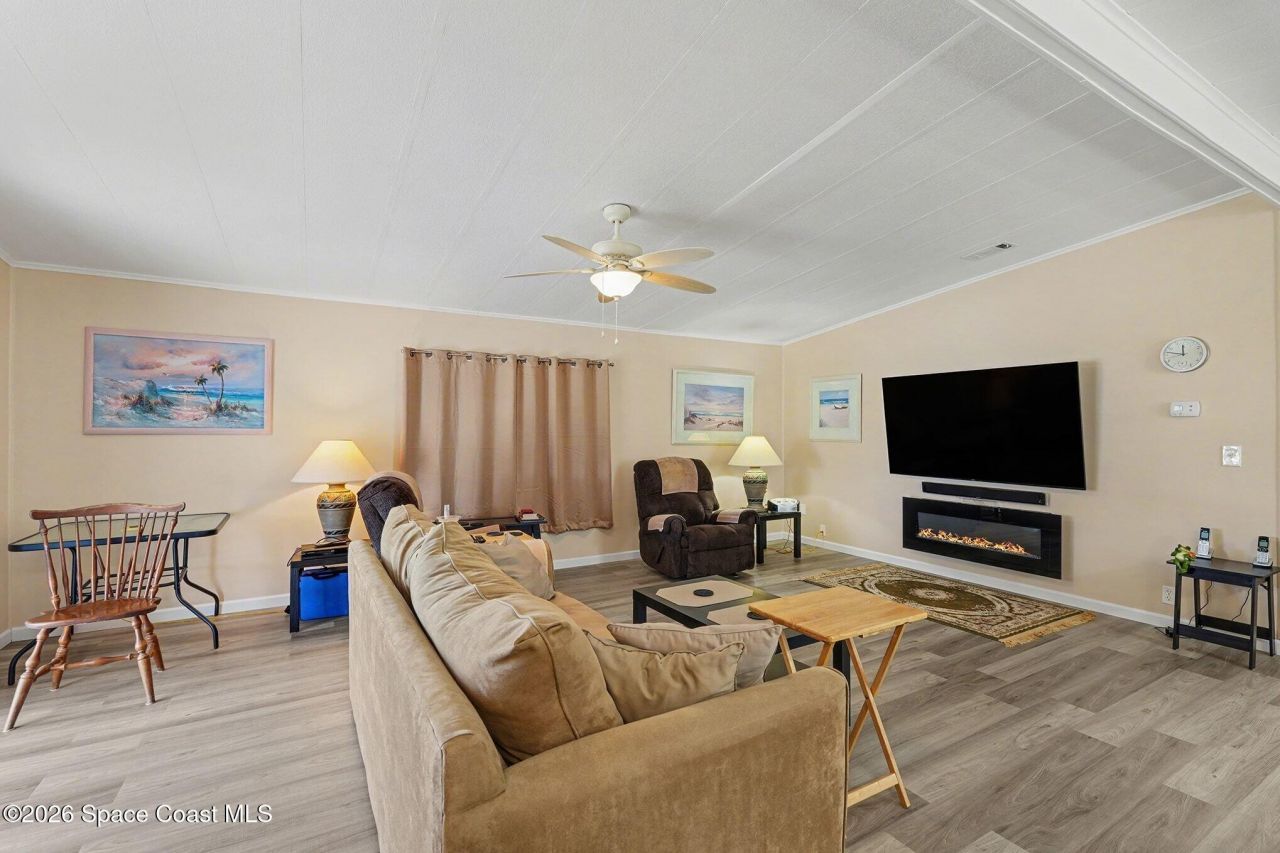 Just bring your toothbrush and pajamas! Everything is done and the house is furnished! This is a premium property in a 55+ neighborhood! The home has been lovingly cared for and has the following New/Newer UPDATES: Roof 2022, Windows 2023, Kitchen & Bathroom Cabinetry and Countertops 2023, LVP Flooring 2023, Carpeting 2023, Appliances 2023, Plywood underfloor (not particle board!), Siding 2023, Screen Room 2023, HVAC 2021, Front and Patio Doors 2023, Drywall/Insulation/Vapor Barrier, Ceramic flooring in Laundry and both bathrooms, 40 gal HWH and Surveillance System 2024. It is fully furnished and ready for its new owners! Come check out this beautiful home!