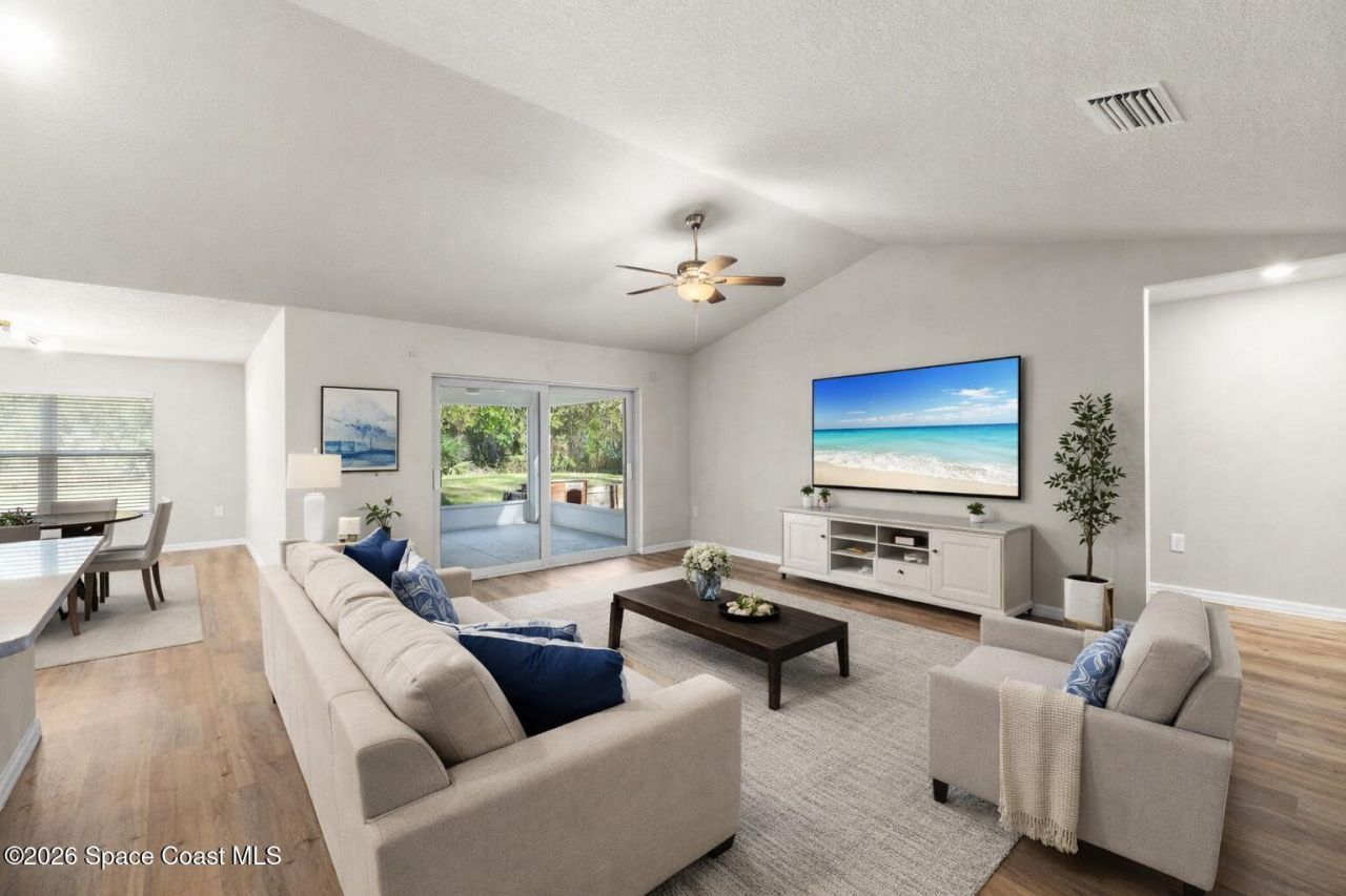 PRICED TO SELL AT $329,000! - Built in 2023, this beautifully maintained home still feels brand new and offers modern finishes throughout. Featuring an upgraded kitchen with stainless steel appliances, ample cabinetry, a spacious pantry, and oversized windows that fill the home with natural light. The open layout flows seamlessly into the living and dining areas, making it perfect for everyday living and entertaining. This home offers two full bathrooms, generous bedroom spaces, and a fantastic covered lanai ideal for relaxing or enjoying Florida evenings.The backyard includes a professionally engineered swale and septic drain field designed to direct rainwater away from the home. During heavy Florida rains, this system helps protect the houses foundation by channeling water toward the drainage area Located in a convenient Palm Bay neighborhood with easy access to shopping, dining, schools, and major roadways, plus approximately a 25-minute drive to the beach. A move-in-ready home.