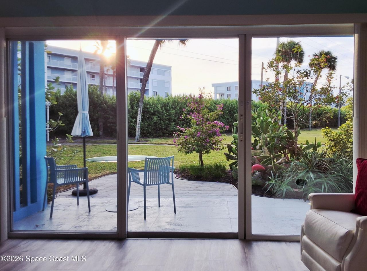 The open, efficient floor plan of this bright & airy coastal retreat extends beyond the sliding doors to an additional 120 sq ft of private outdoor living space facing the gardens & recreational areas of the 4.25 acre Assoc property. This move in ready, turnkey unit is well located on A1A at Seagull Beach Park. Ideal for singles, couples retreat or snowbirds. Low $290/mo fees & strong area rental market make for a proven investment opportunity. 90 day min rental per Assoc docs. 2024 Kitchen & bath, 2023 A/C, New Roof 2023, updated Olympic size pool 2024. Features include 9-ft ceilings, storage closets, luxury vinyl plank flooring, LED lighting, smart thermostat, keyless entry & paver patio. Fees include water, pest control, insurance, & all exterior bldg maint (painting planned for 2026, free WiFi in process). Satellite Beach is considered a safe, quiet beach town with highly rated schools & a strong community feel. Approx 20 minutes to Melbourne Intl Airport & 1 hour from Orlando. Furnishings optional.