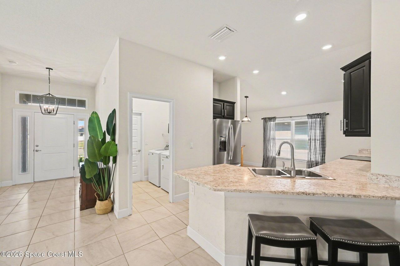 Priced to sell in desirable Hickory Ridge! This 4-bedroom, 2-bath home offers a great layout and an unbeatable location just minutes from the Space Center, area beaches, and major highways. The kitchen features a breakfast nook, pantry, and breakfast bar, with a separate dining room for additional entertaining space. Enjoy Florida living on the screened patio with an extended paver patio overlooking a private fenced backyard. The spacious primary suite includes a walk-in closet, double sinks, and a walk-in shower. Washer and dryer are included, making this home move-in ready and a fantastic opportunity in a convenient location. Seller is offering a $3000 concession to the buyer at closing.