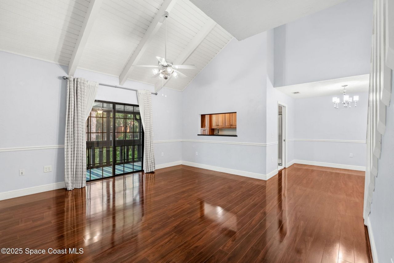 This rare end unit offers exceptional privacy and a versatile layout, complete with a cozy carpeted loft that can serve as a home office, guest lounge, or creative lifestyle space. Rich hardwood floors, a covered lanai and soaring vaulted ceilings create an open, inviting atmosphere, while the convenience of an in-unit washer & dryer adds everyday ease. Just minutes from Melbourne Square Mall and quick access to I-95, the location balances peaceful living with effortless connectivity. Within Greenwoods gated community, residents enjoy resort-style amenities including a sparkling pool, hot tub, sauna, tennis & racquetball courts, shuffleboard, fitness center, and a vibrant clubhouse. Association fees cover essentials like cable, internet, lawn care, pest control, insurance, and even roof replacement, ensuring worry-free ownership.